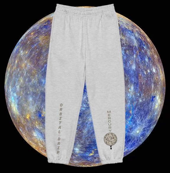 The Mercury Sweatpants from our Terrestrial Drip series channel the raw extremes of the solar system’s fastest planet with a bold 90s streetwear vibe. Built with thick fleece and a relaxed, boxy fit, they’re as durable as Mercury itself while keeping the comfort of brushed softness on the inside. Deep side pockets and elastic cuffs make them practical for everyday orbit, while the roomy cut is perfect for lounging, layering, or making a statement.